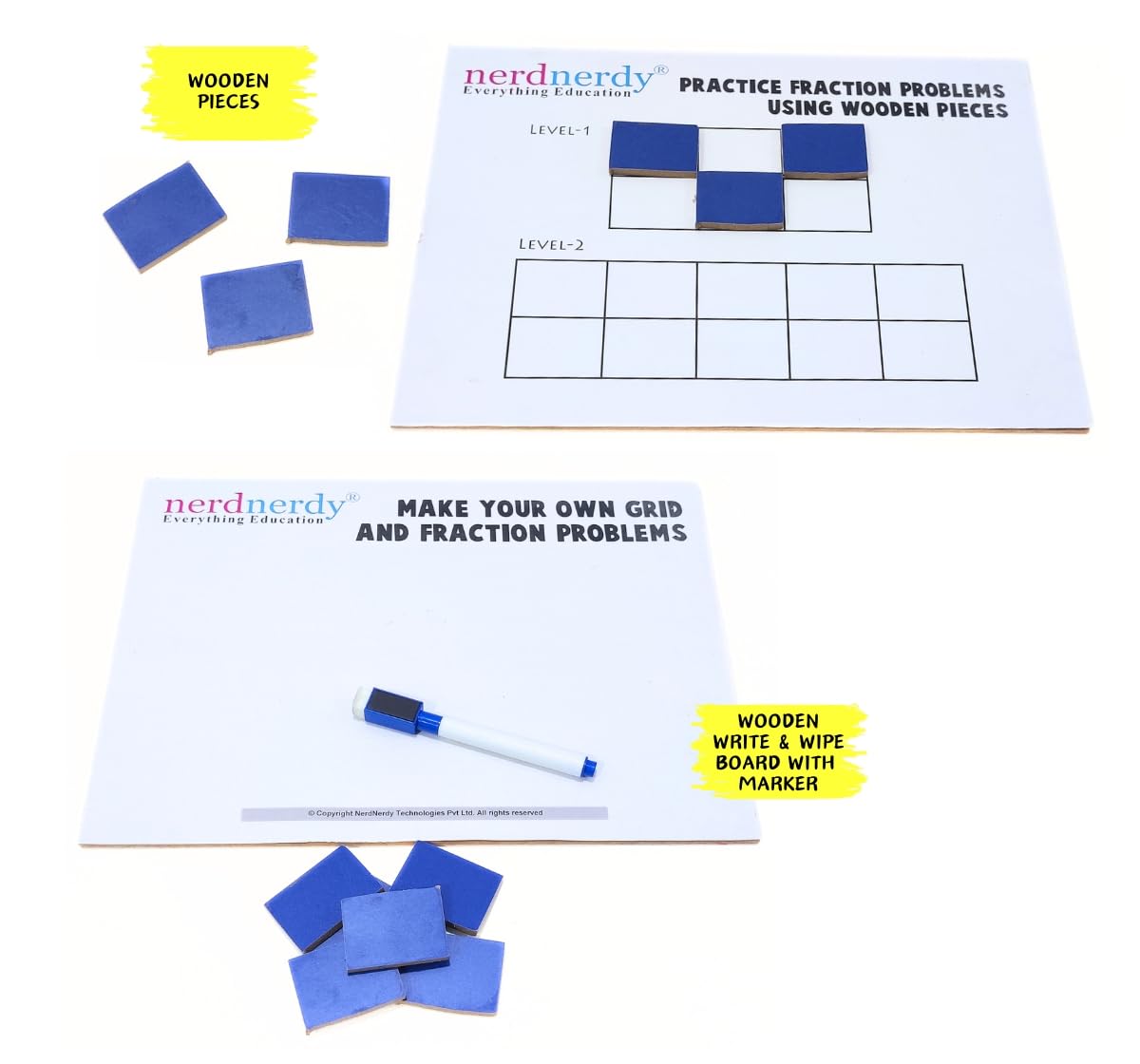 NerdNerdy Fractions Learning Board Game Set with Write & Wipe Marker, Educational Math Game for Kids Ages 4+years